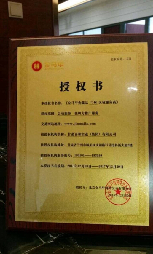 2014年12月,泰和集團正式與金馬甲簽約,成為甘肅第一家一級服務商,為廣大客戶提供一個咨詢、申購、交易的平臺,將這項前景無限的新興產業推廣到全國各個角落。