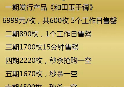截至目前為止,和田碧玉手鐲已經發售了6期,情況如下: