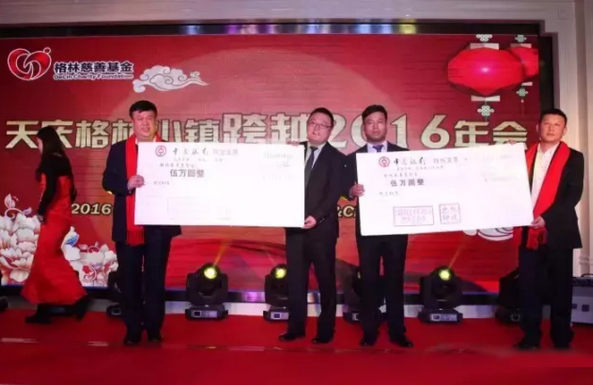 天慶集團董事長韓慶和泰和實業集團董事長張建忠向格林慈善基金會捐款