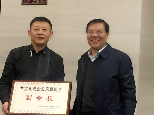全國政協常委、民進甘肅省委主委尚勛武為新當選的副會長張建忠授牌