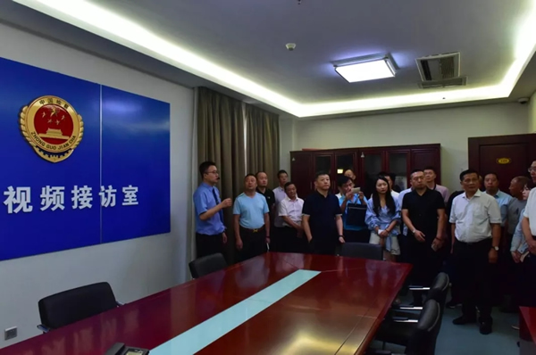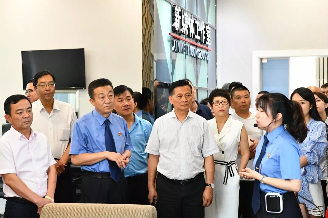 民營企業家們在市院黨組書記、檢察長張學軍和黨組成員、副檢察長蒲軍的陪同下,參觀了市院12309檢察服務中心、案管大廳、新媒體工作室、公益訴訟調查指揮中心和黨建活動中心等檢察辦公辦案場所,現場聽取工作人員演示講解,近距離感受檢察工作流程。代表嘉賓不時詢問檢察機關的各項工作職能,張學軍檢察長用平實易懂的語言詳細進行了解答。