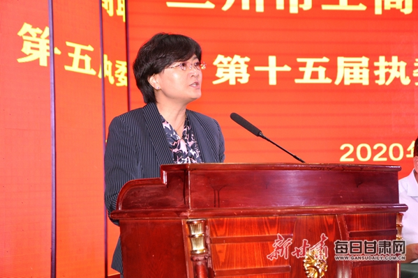 ▲ 蘭州市政府副市長、市工商聯主席、市總商會會長馬彩云作工作報告