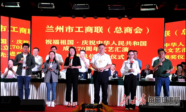 會議還為獲得2019年蘭州市工商聯(總商會)獲得“四好”商會命名的蘭州高新技術產業開發區商會、蘭州市溫州商會等10家商會頒發了“四好”商會榮譽牌;對參加2019年祝福祖國·慶祝中華人民共和國成立70周年文藝匯演的蘭州會寧商會、蘭州鴻峰雜糧食府等30家先進單位進行了通報表揚,并頒發了獎牌。