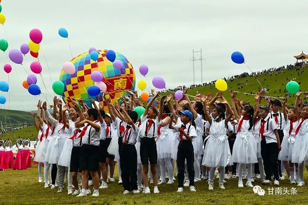 俞成輝在致辭中說,有一種天色叫“甘南藍”,無須望眼欲穿,夢想的翅膀就會自由飛旋;有一種底色叫“甘南綠”,無須濃墨重彩,信仰的曲線就會自然天成;有一種水色叫“甘南美”,無須詩情畫意,心靈的港灣就會碧波蕩漾;有一種月色叫“甘南情”,無須驀然回首,記憶的廊橋就會燈火闌珊;有一種音色叫“甘南韻”,無須曲高和寡,生命的天籟就會穿越云霄;有一種成色叫“甘南紅”,無須慷慨激昂,奮進的旗幟就會迎風飄揚……
